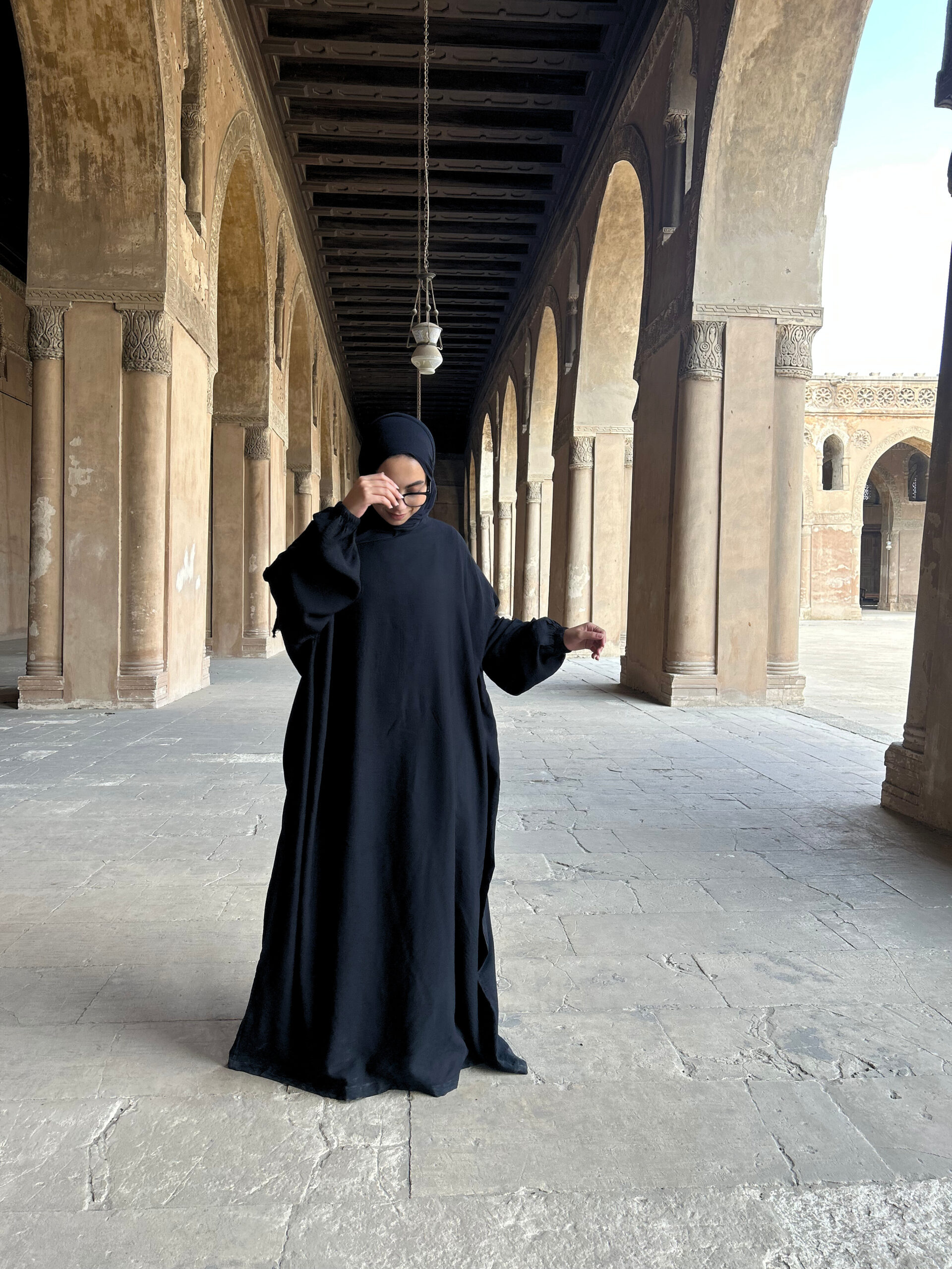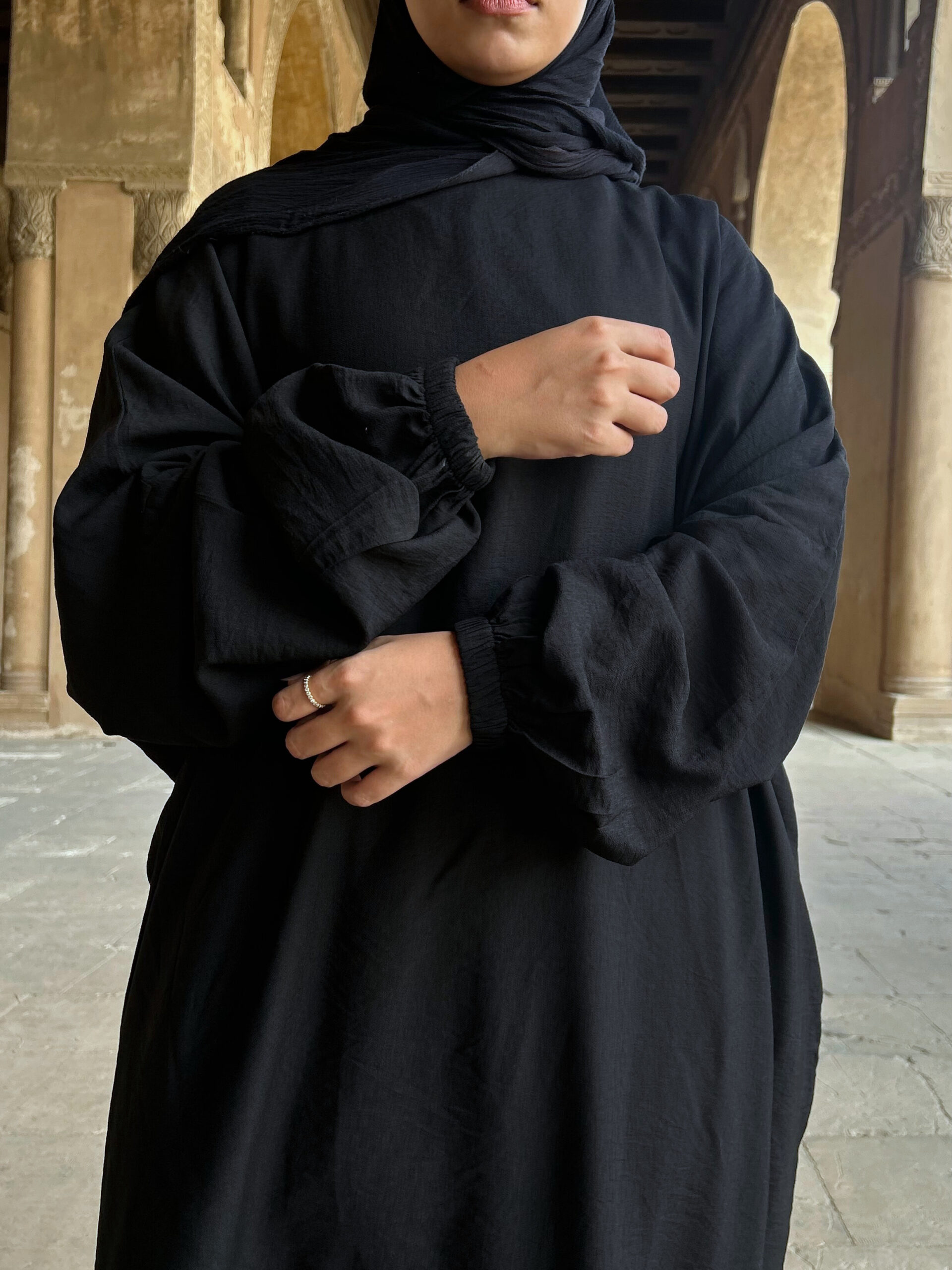 إسدال عباية بخامة كتان عملي مع طرحة منفصلة بتصميم راقٍ يمنحك راحة وأناقة بلا مجهود